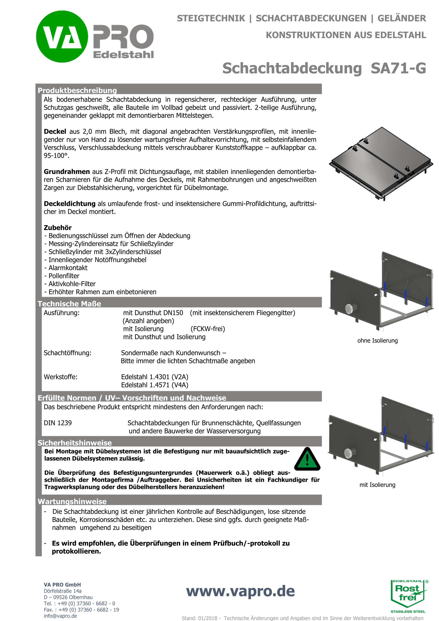 Beschreibung Schachtabdeckung SA71-G