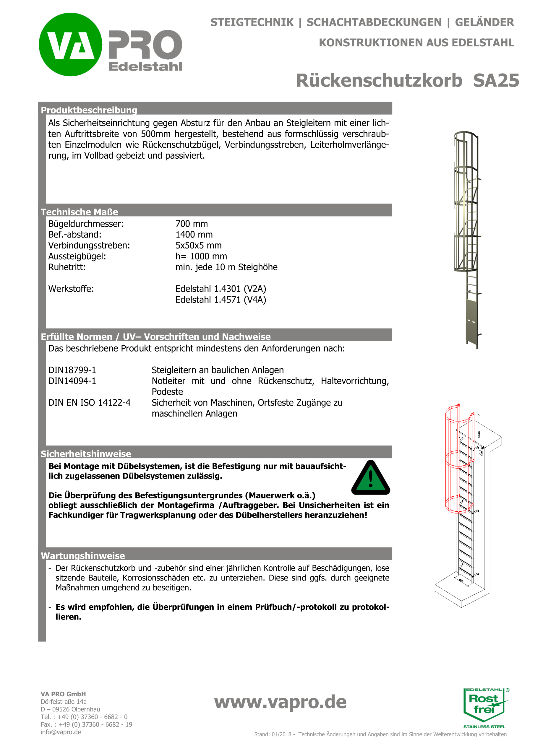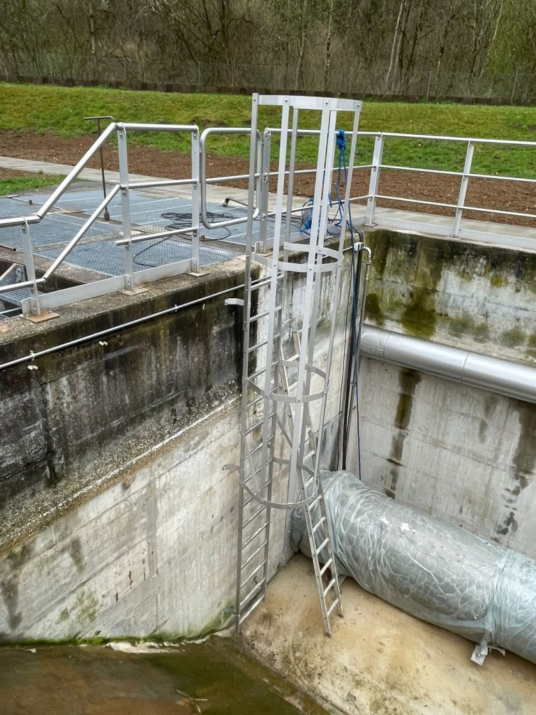 • DIN14094-1-Notleitern mit und ohne Rückenschutz, Haltevorrichtung, Podeste