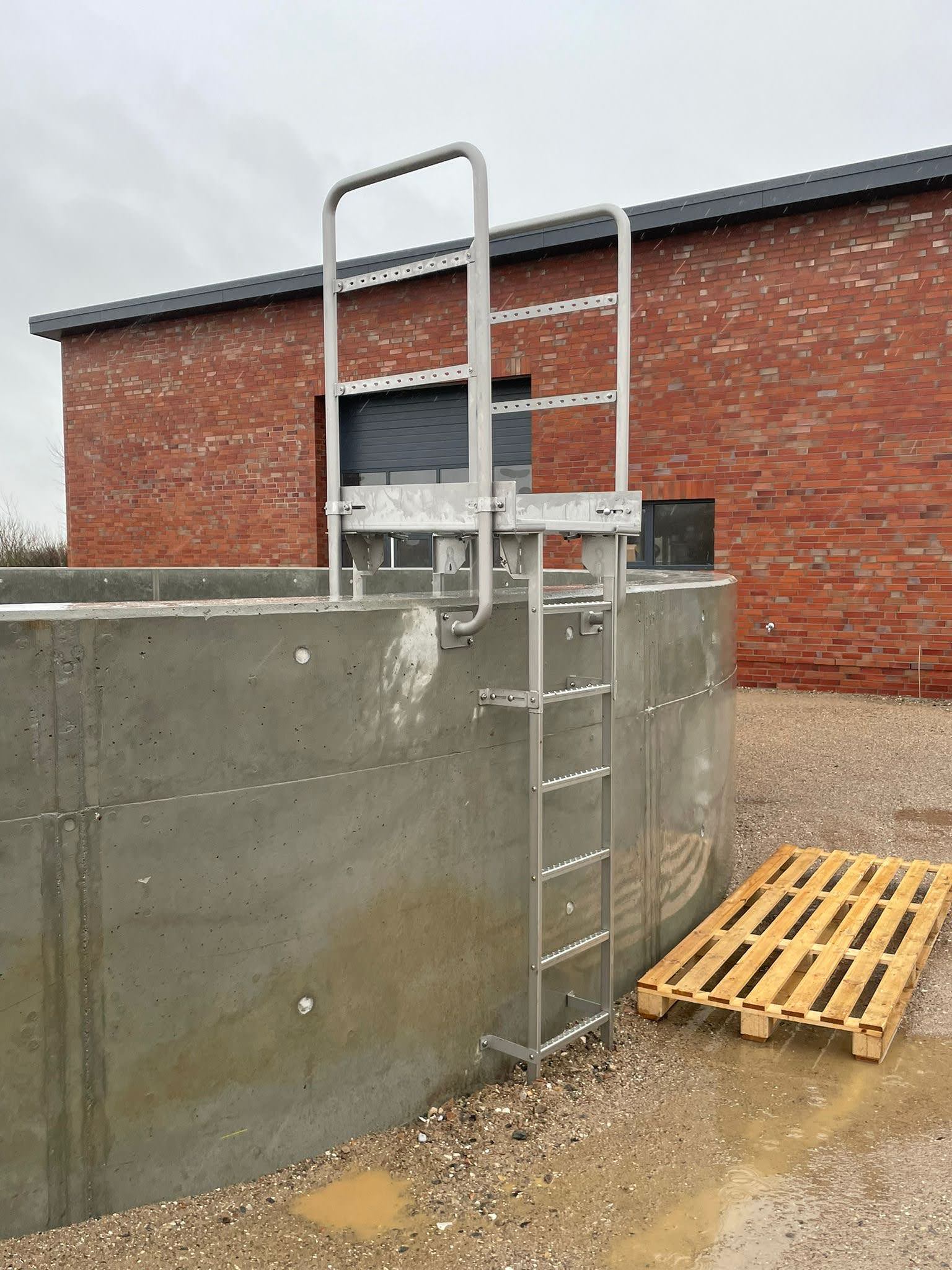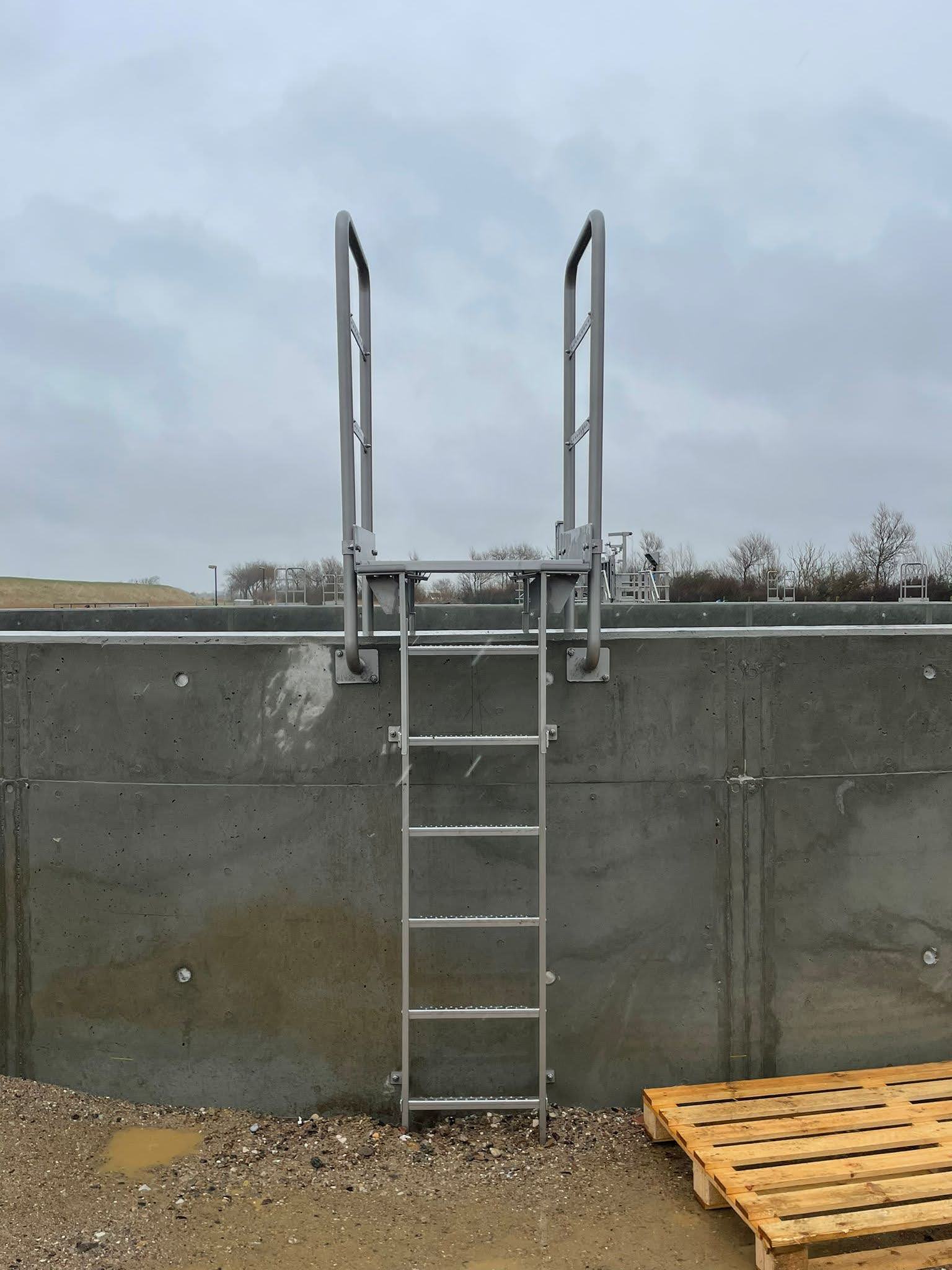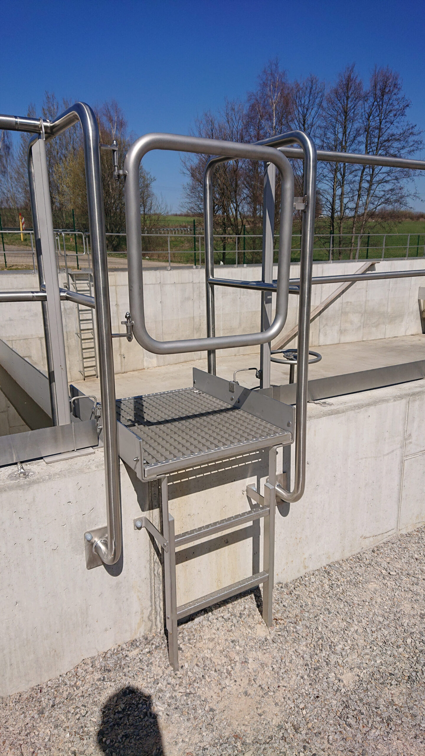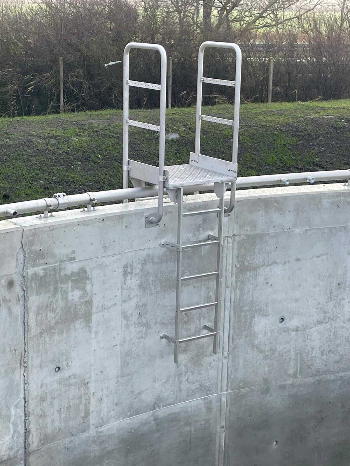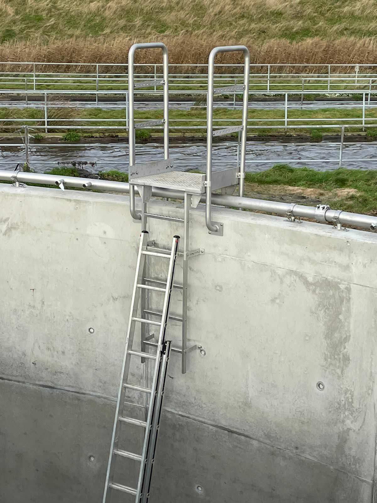 - Der Leiterüberstieg ist einer jährlichen Kontrolle auf Beschädigungen, lose sitzende Bauteile, Korrosionsschäden etc. zu unterziehen. Diese sind ggfs. durch geeignete Maßnahmen umgehend zu beseitigen.